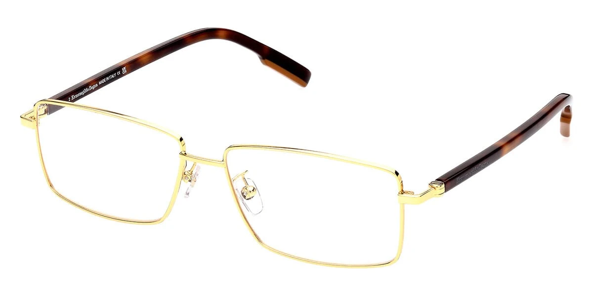This rectangular Ermenegildo Zegna optical comes in a shiny deep gold frame.