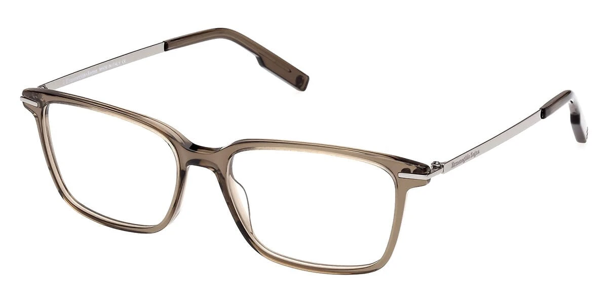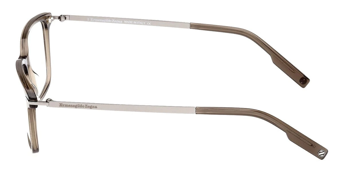 This rectangular Ermenegildo Zegna optical comes in a transparent grey frame.