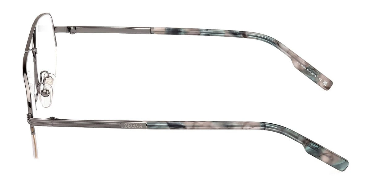 This aviator Ermenegildo Zegna optical comes in a shiny dark ruthenium frame.
