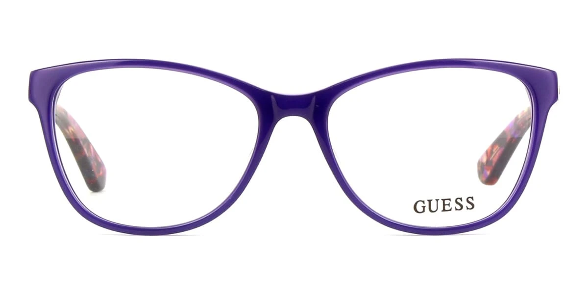 This square Guess optical comes in a violet with dark havana frame.