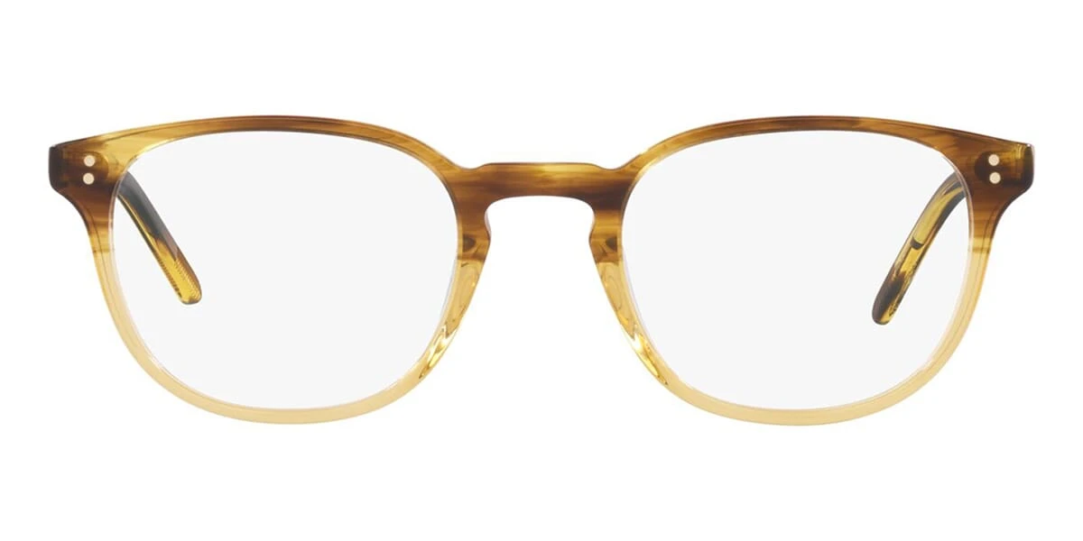 This rectangular Oliver Peoples optical comes in a canarywood gradient frame.