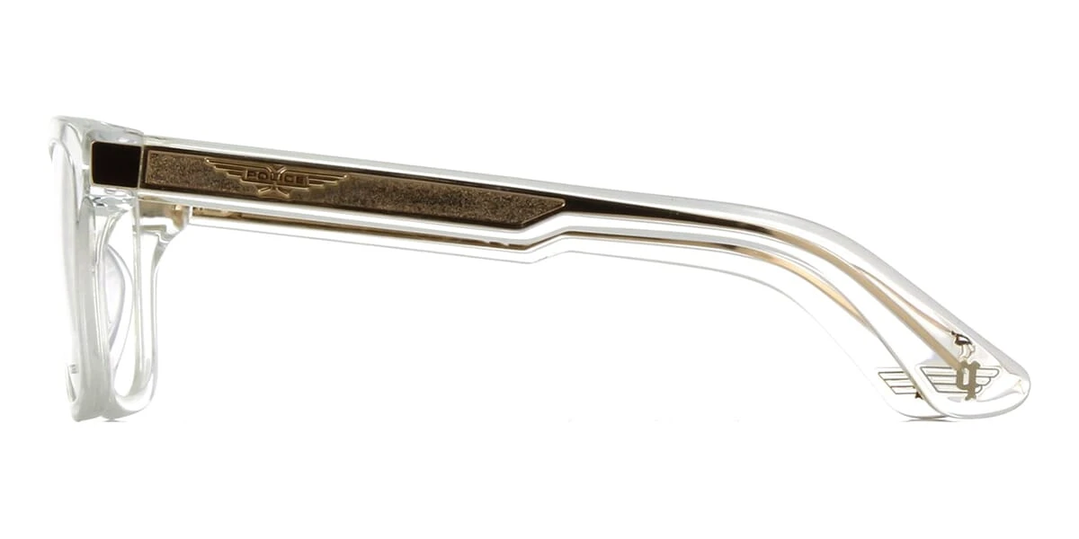 This square Police optical comes in a crystal and gold frame.