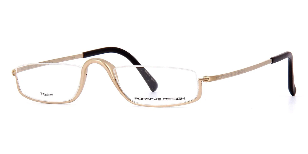 This rectangular Porsche Design optical comes in a satin gold frame.