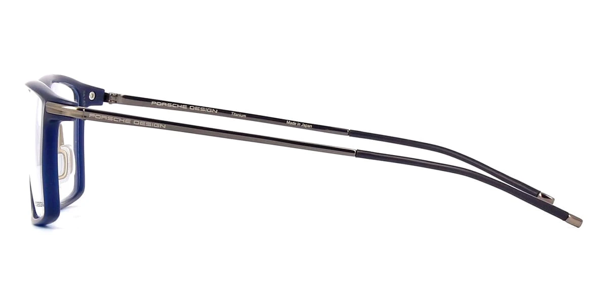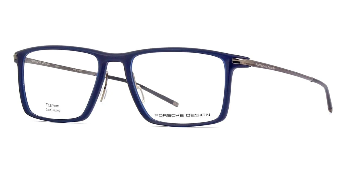 This square Porsche Design optical comes in a matte dark blue crystal frame.