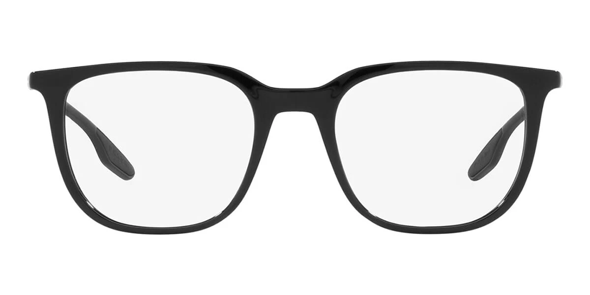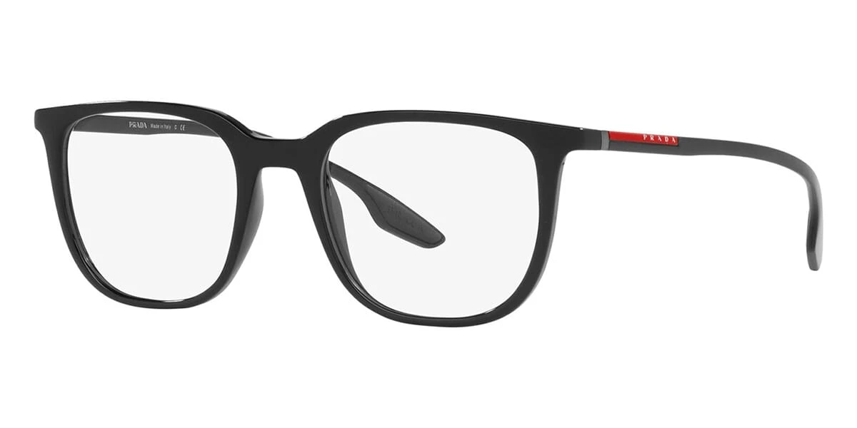 This rectangular Prada Linea Rossa optical comes in a black frame.