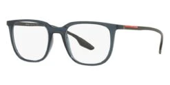 This square Prada Linea Rossa optical comes in a blue crystal frame.