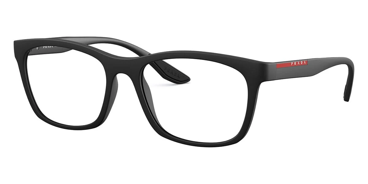 This square Prada Linea Rossa optical comes in a black rubber frame.