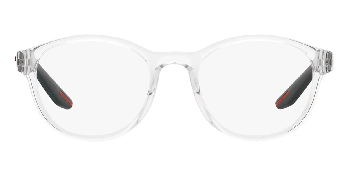 This round Prada Linea Rossa optical comes in a crystal frame.