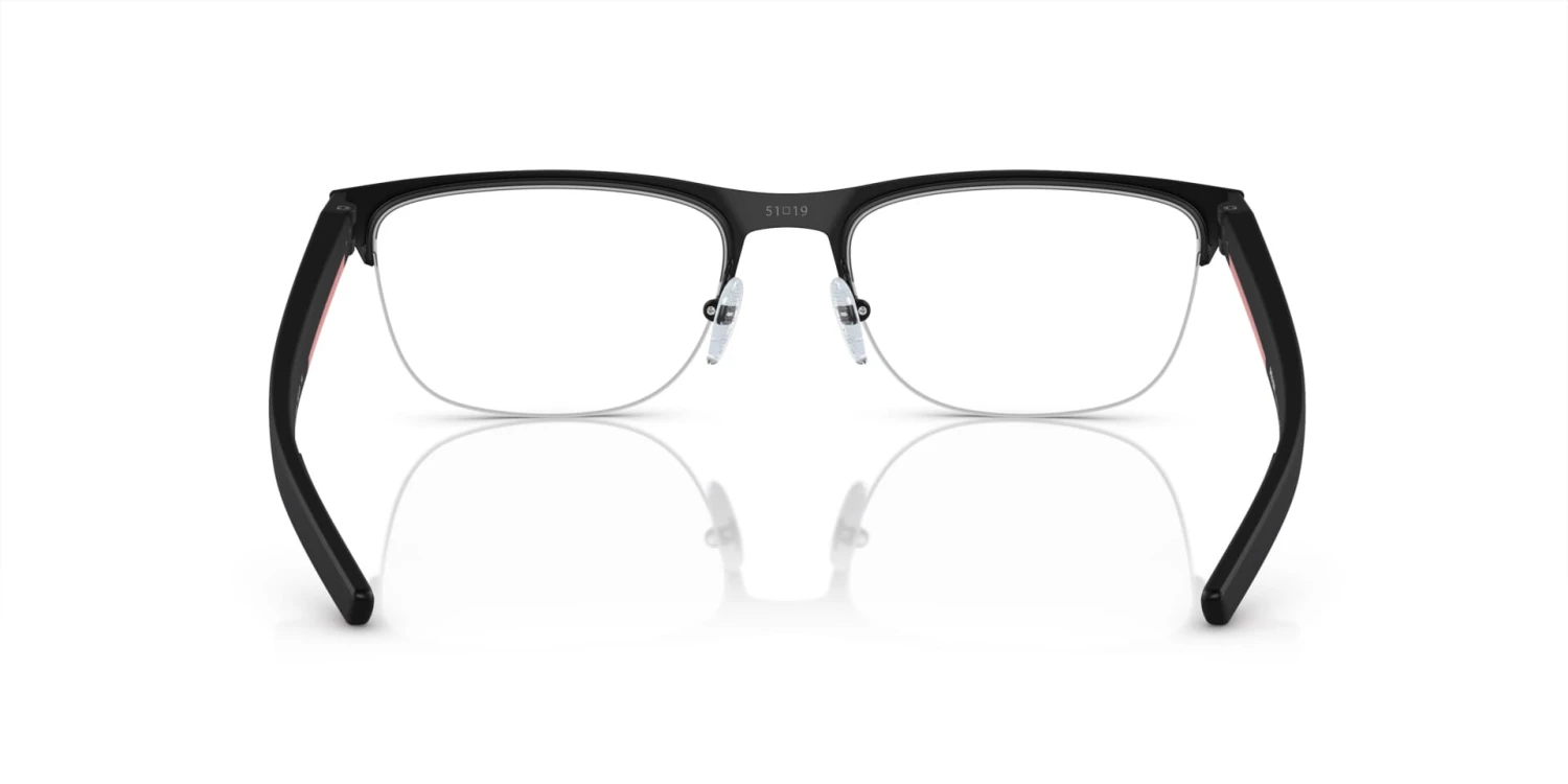 This rectangular Prada Linea Rossa optical comes in a matte black frame.