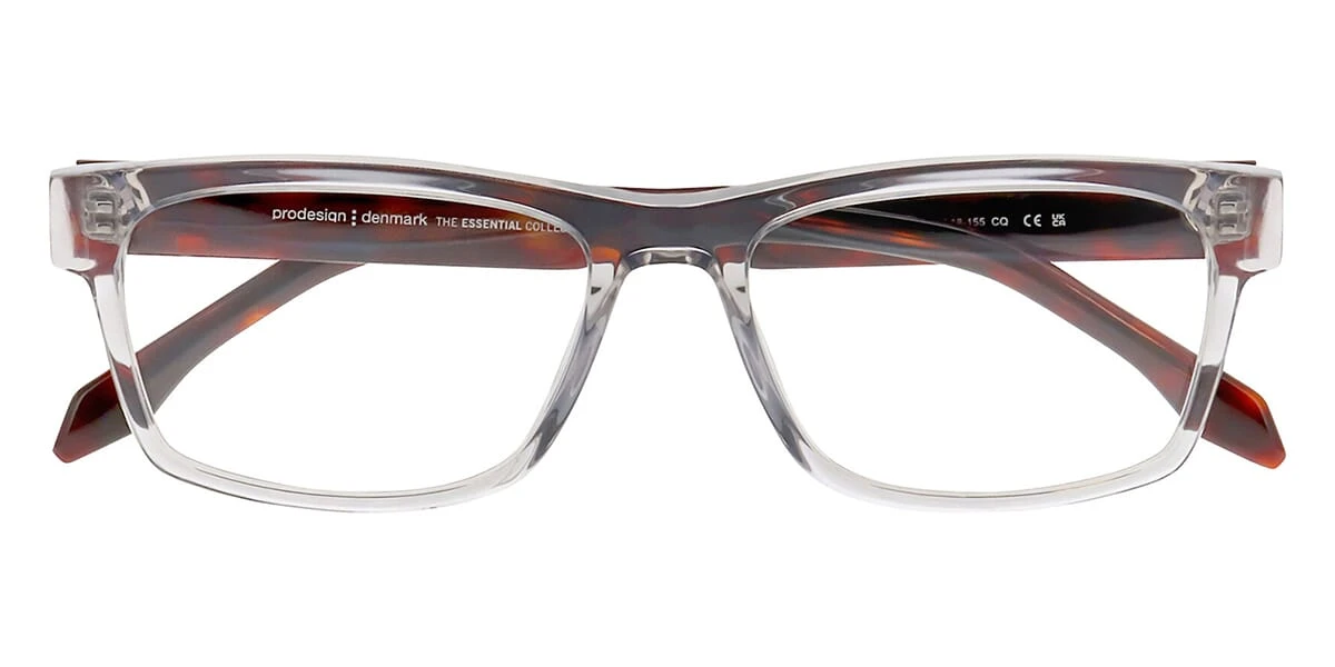 This square Prodesign optical comes in a transparent grey with brown havana frame.