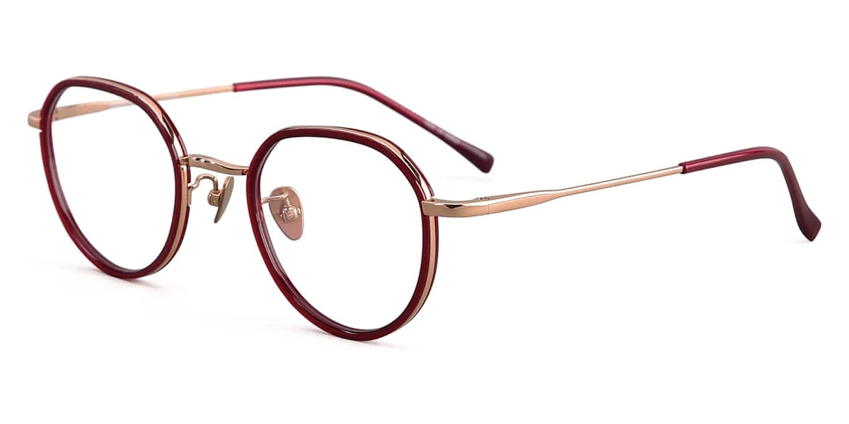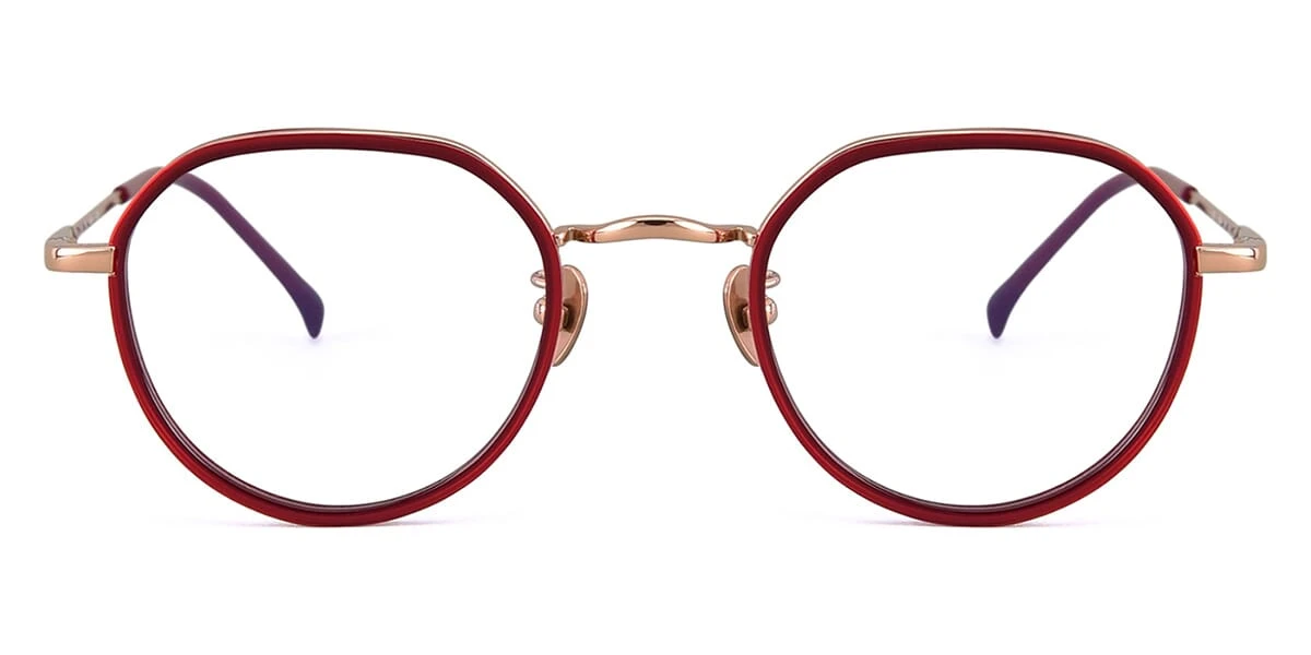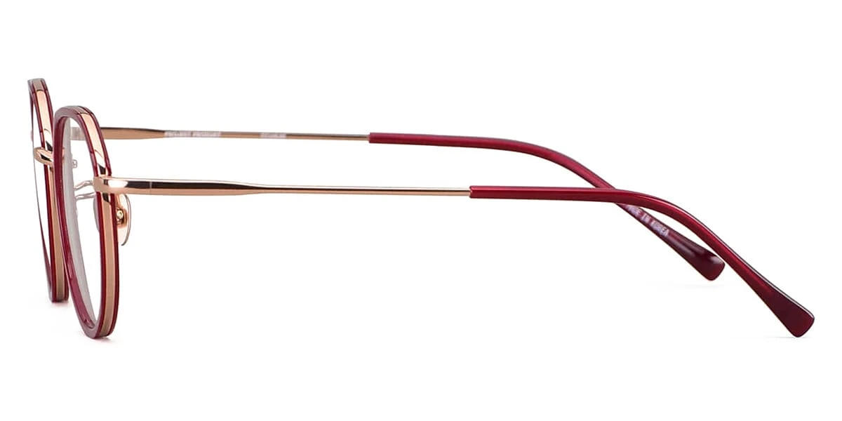 This round Projekt Produkt optical comes in a red and pink gold frame.