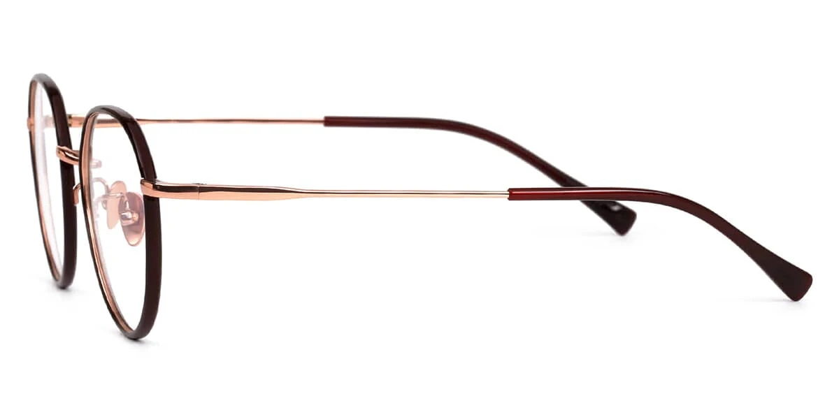 This round Projekt Produkt optical comes in a wine and pink gold frame.