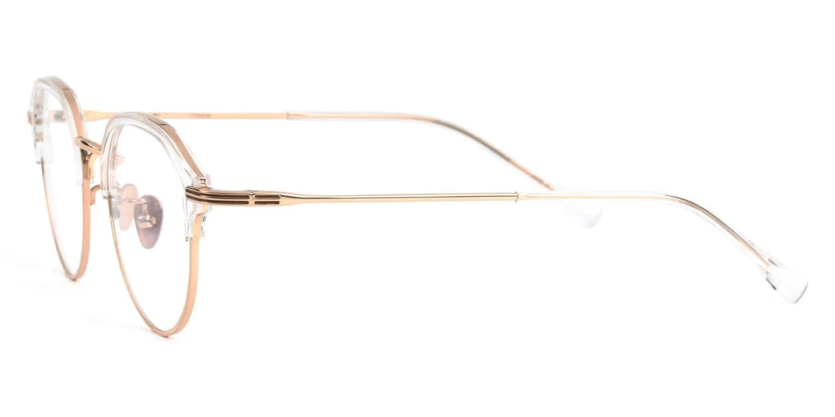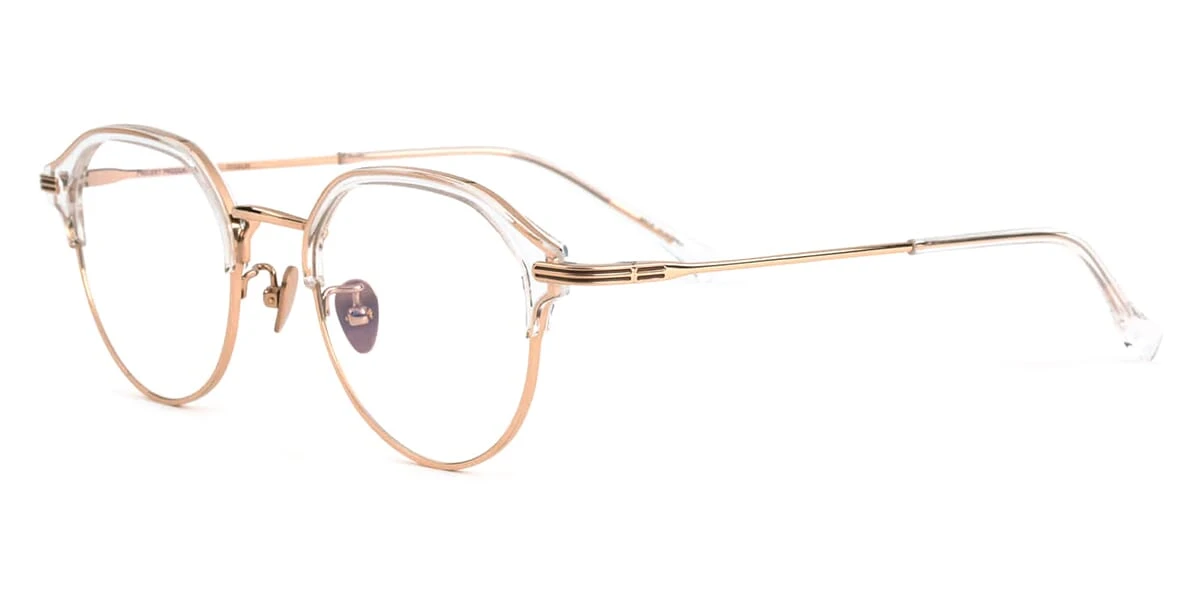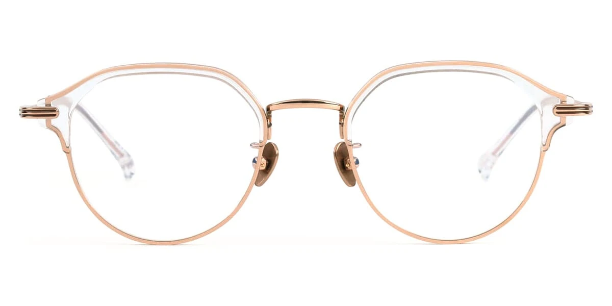 This round Projekt Produkt optical comes in a crystal and pink gold frame.