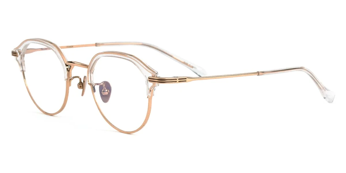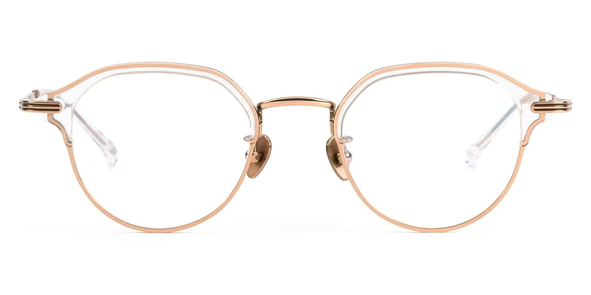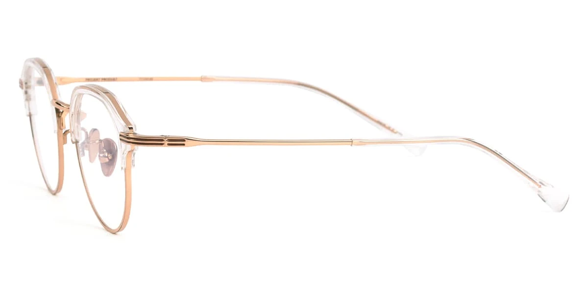 This round Projekt Produkt optical comes in a crystal and pink gold frame.