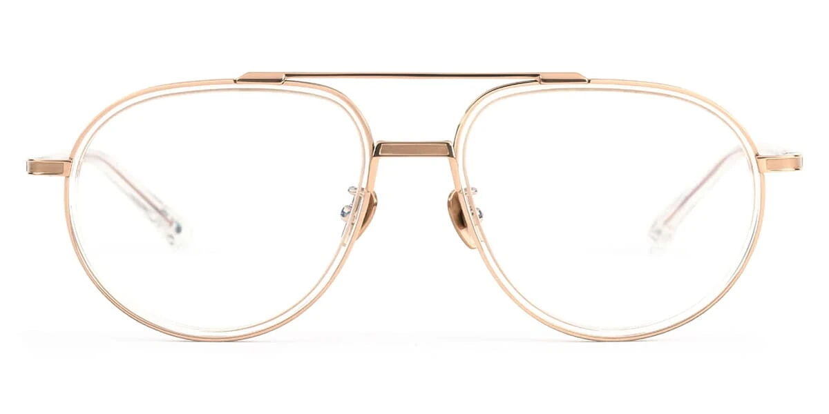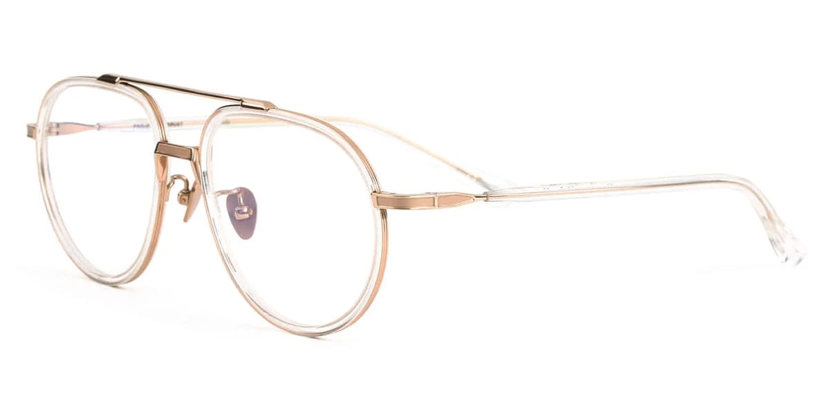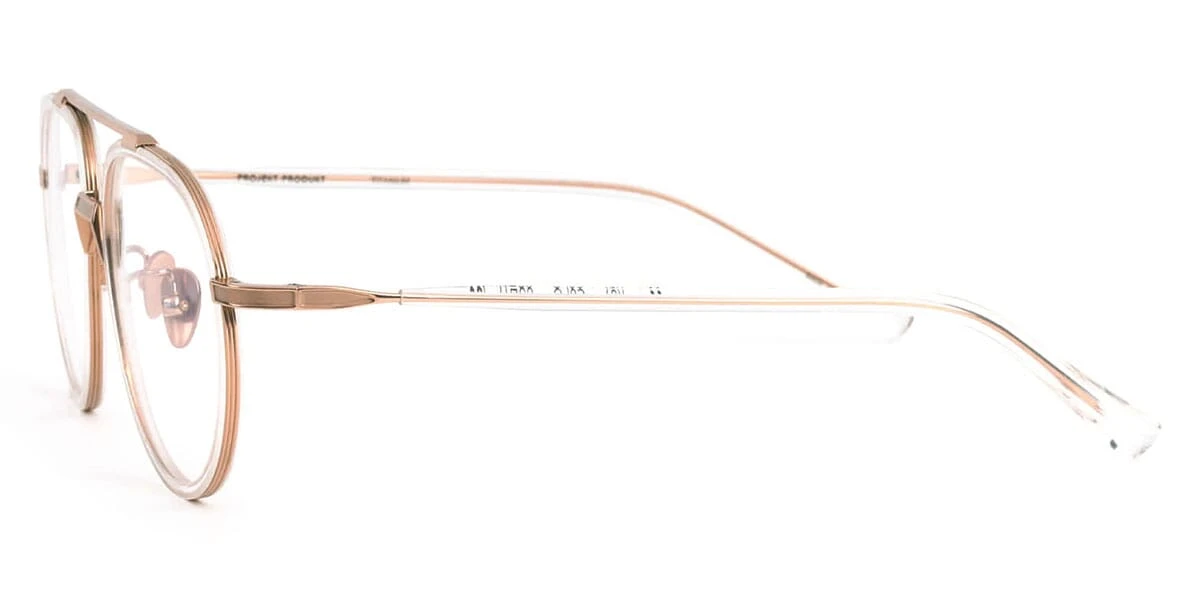 This aviator Projekt Produkt optical comes in a crystal and pink gold frame.