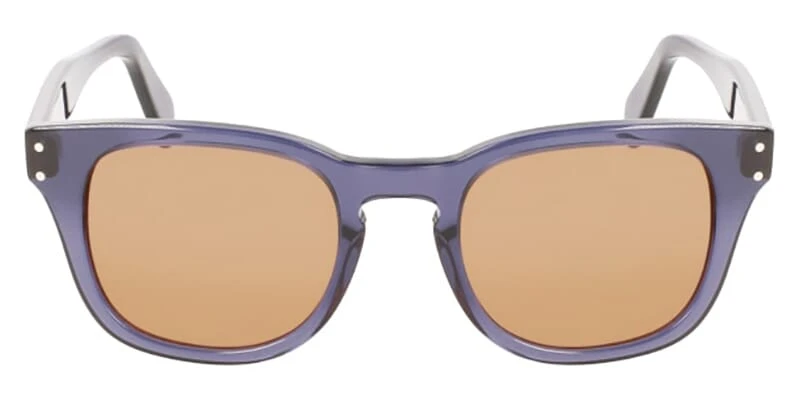 This square Salvatore Ferragamo sunglass comes in a transparent blue frame with brown lenses.