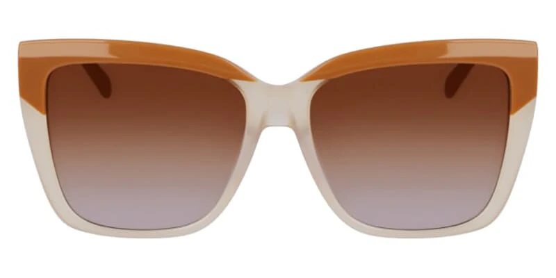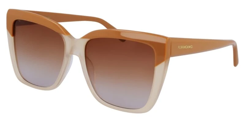 This butterfly Salvatore Ferragamo sunglass comes in a caramel frame with brown lenses.
