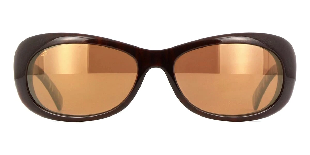 This cat eye Serengeti sunglass comes in a bronze zebra frame with brown polarised photochromic lenses.