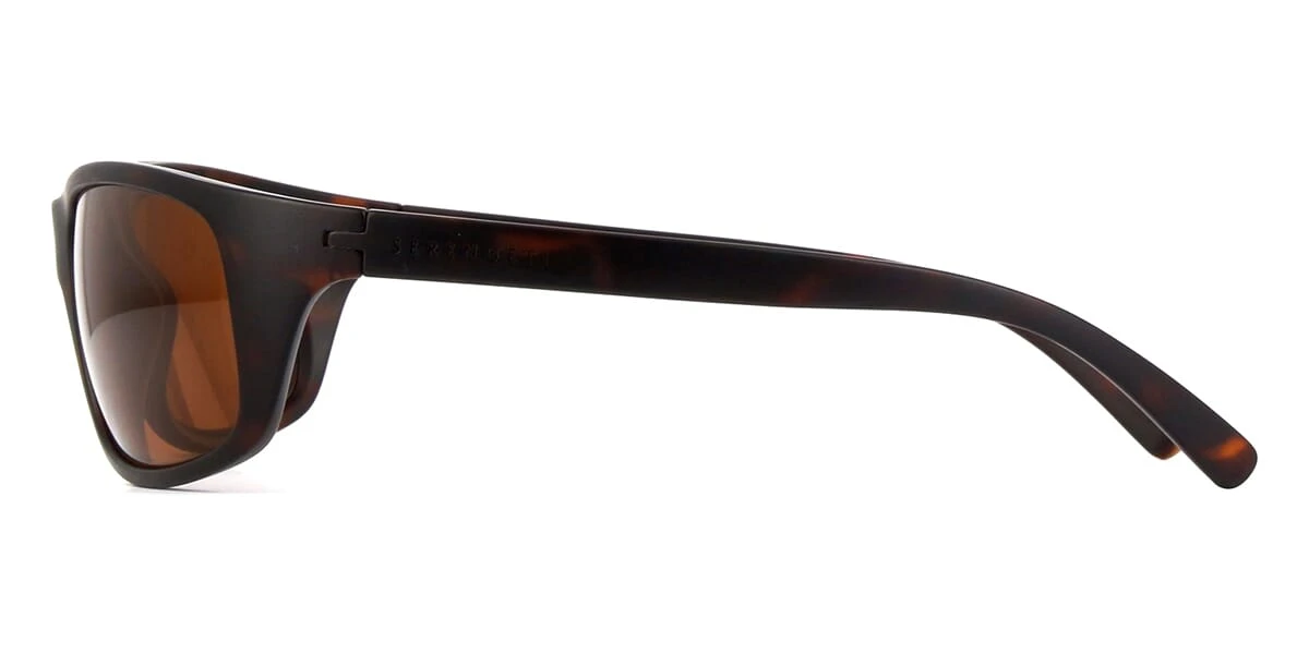 This wraparound Serengeti sunglass comes in a satin dark tortoise frame with brown photochromic polarised phd lenses.