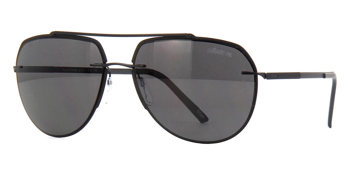 This aviator Silhouette sunglass comes in a black frame with slm grey polarised lenses.