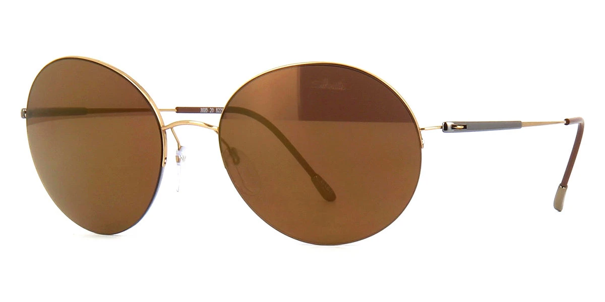This round Silhouette sunglass comes in a gold frame with gold mirror lenses.