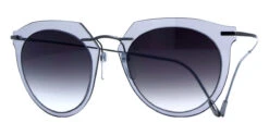 This round Silhouette sunglass comes in a transparent grey and ruthenium frame with blue grey gradient lenses.