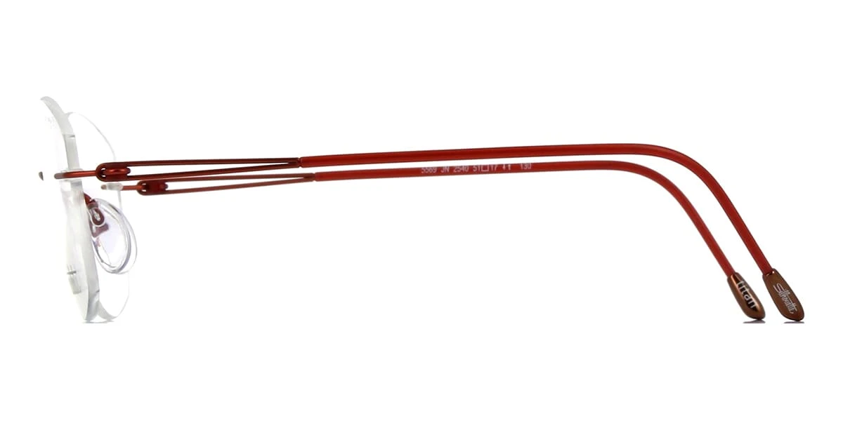 This cat eye Silhouette optical comes in a copper red frame.