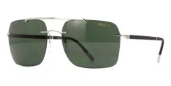 This square Silhouette sunglass comes in a 23kt gold plated ruthenium and matte black rubber frame with green polarised lenses.