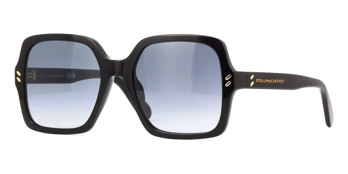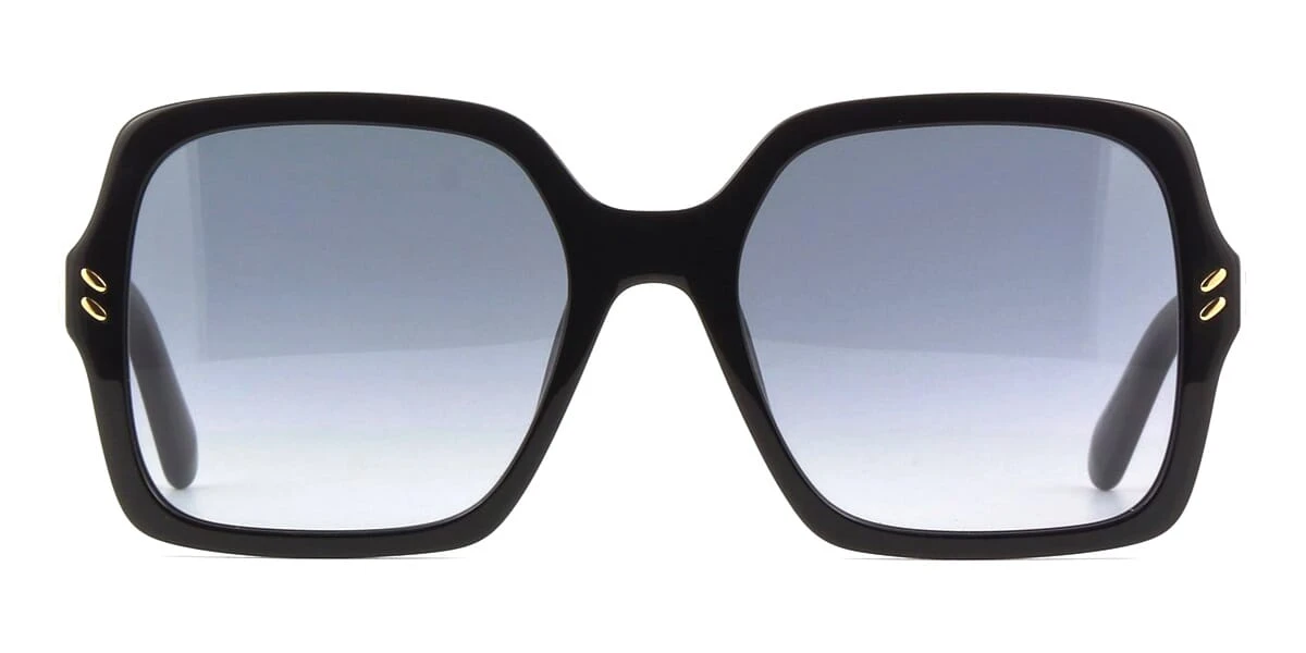 This square Stella McCartney sunglass comes in a shiny black frame with grey gradient lenses.