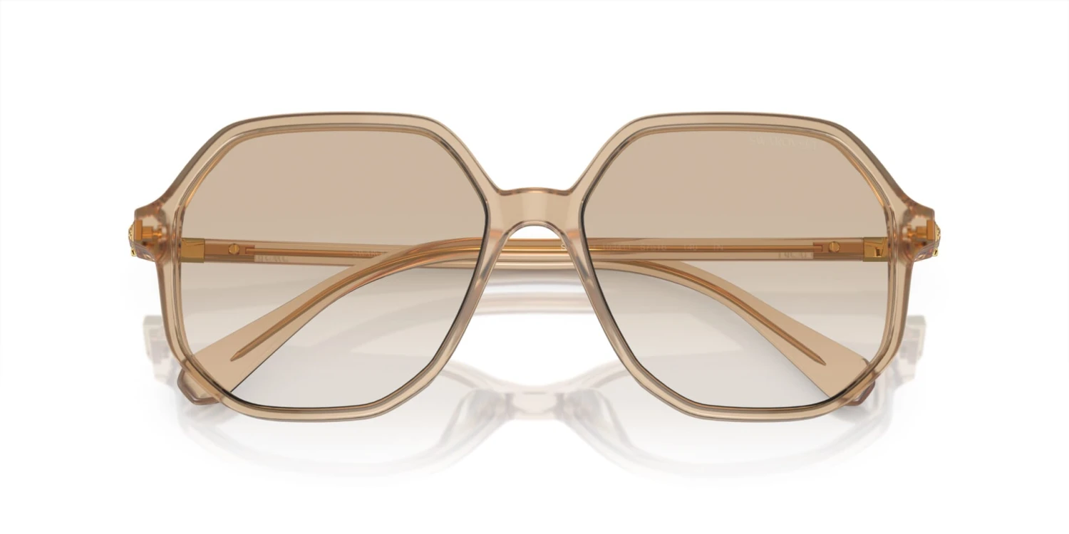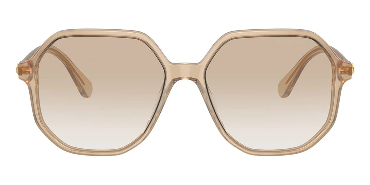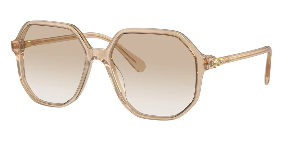 This square Swarovski sunglass comes in a opaline light brown frame with light grey gradient lenses.