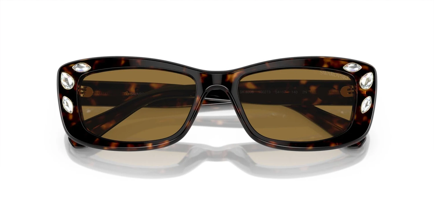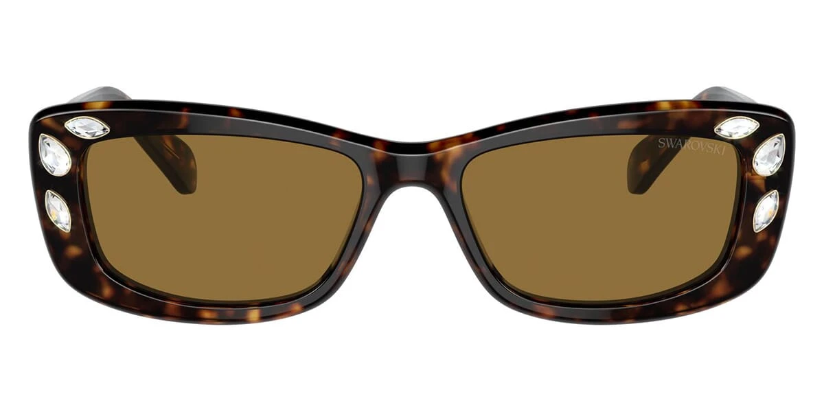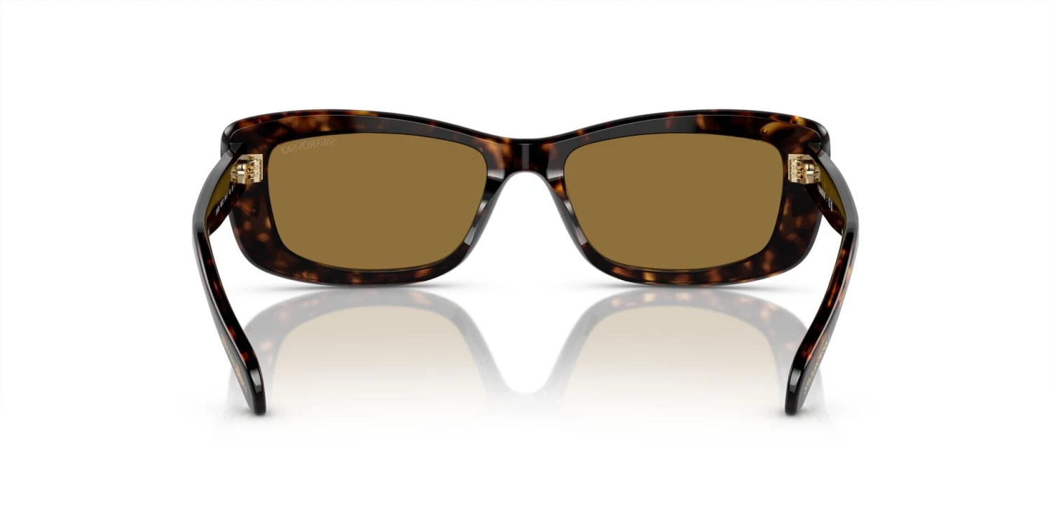This rectangular Swarovski sunglass comes in a dark havana frame with brown lenses.