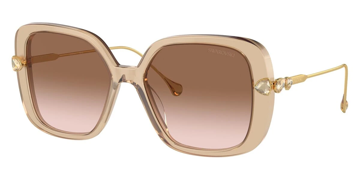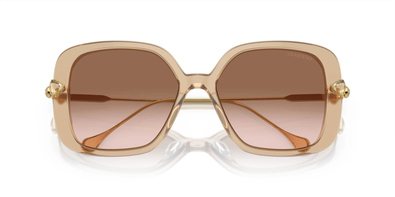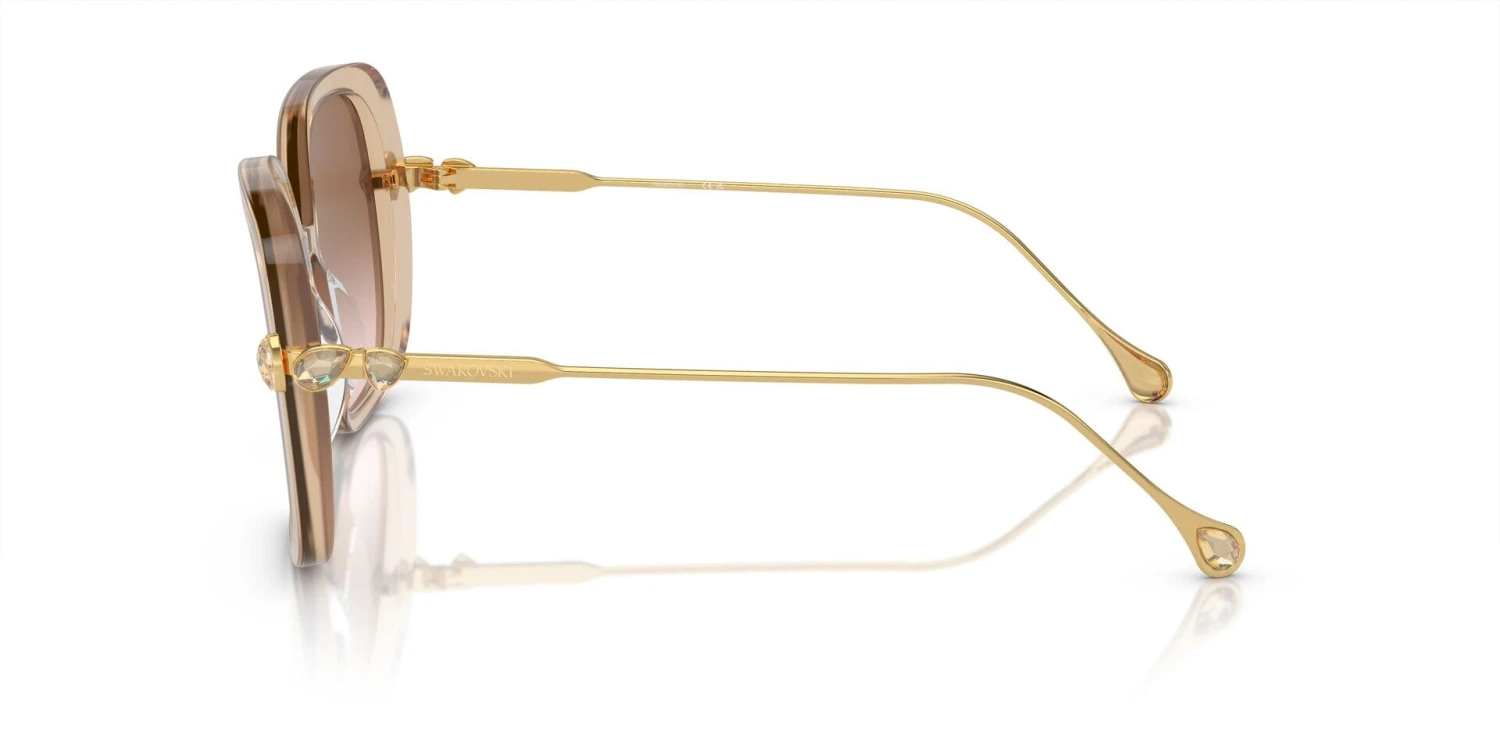 This butterfly Swarovski sunglass comes in a beige crystal frame with brown gradient lenses.