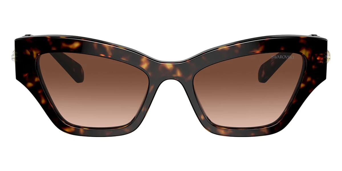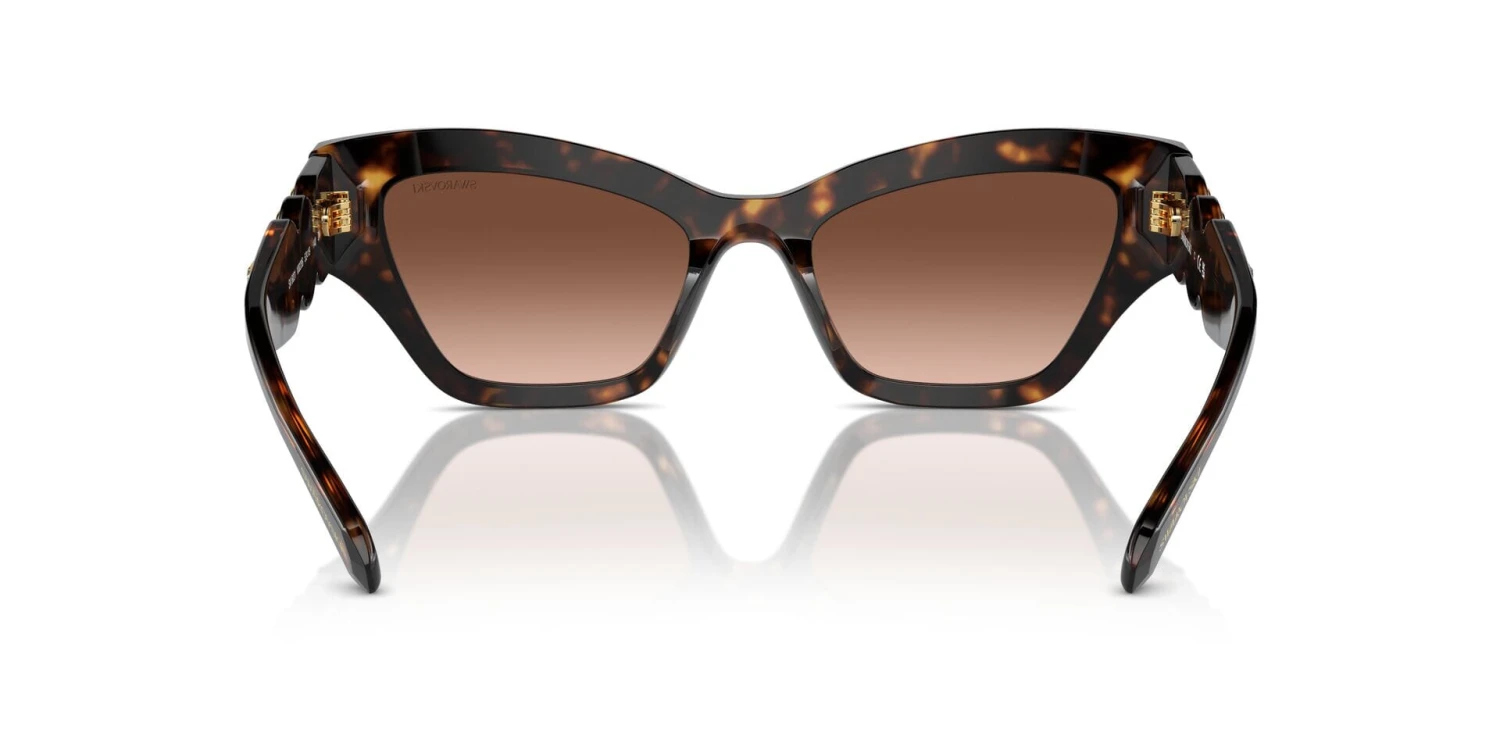 This cat eye Swarovski sunglass comes in a havana frame with brown gradent lenses.
