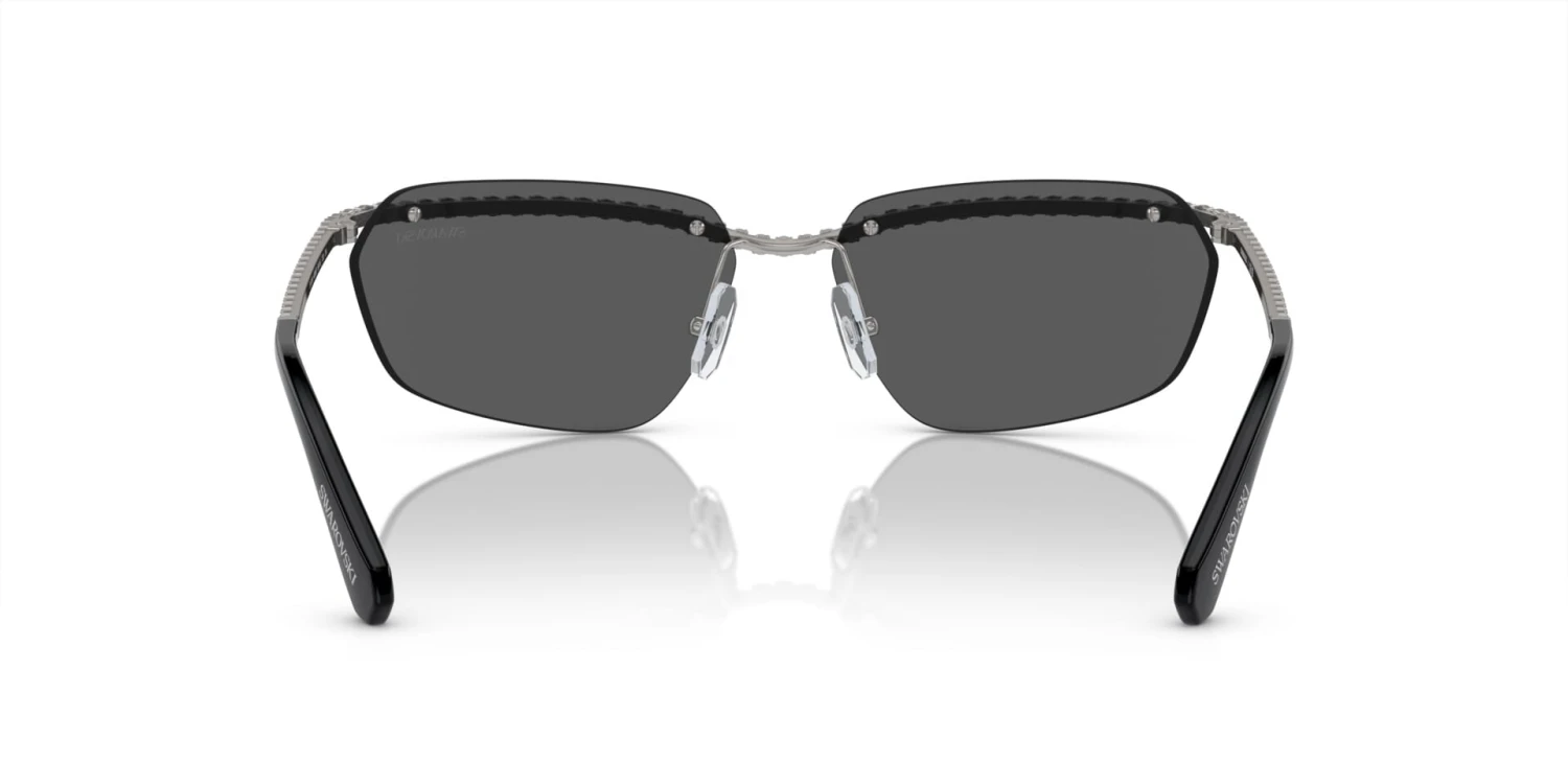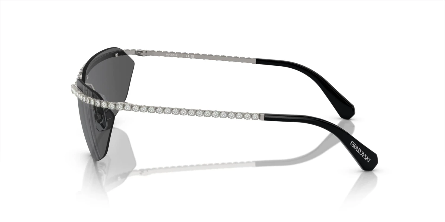 This rectangular Swarovski sunglass comes in a gunmetal frame with dark grey lenses.