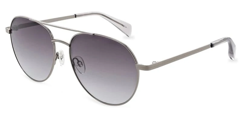 This aviator Ted Baker sunglass comes in a light gunmetal frame with grey gradient lenses.
