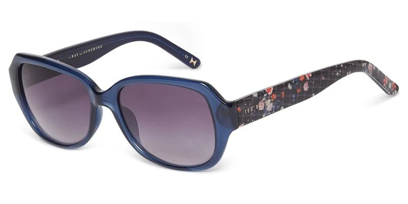 This butterfly Ted Baker sunglass comes in a navy frame with grey lenses.