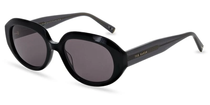 This round Ted Baker sunglass comes in a black frame with grey lenses.