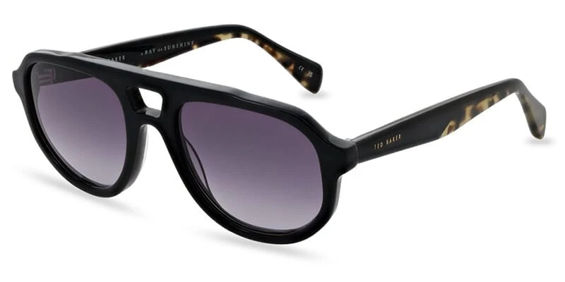 This square Ted Baker sunglass comes in a black frame with grey gradient lenses.