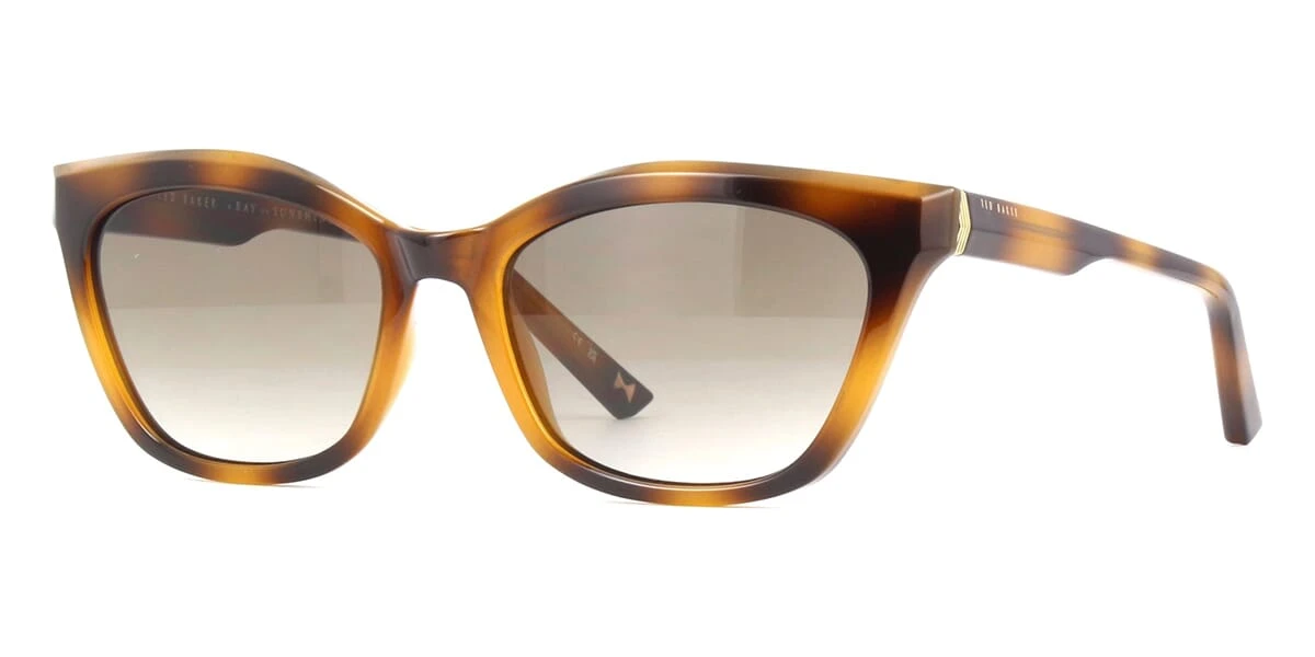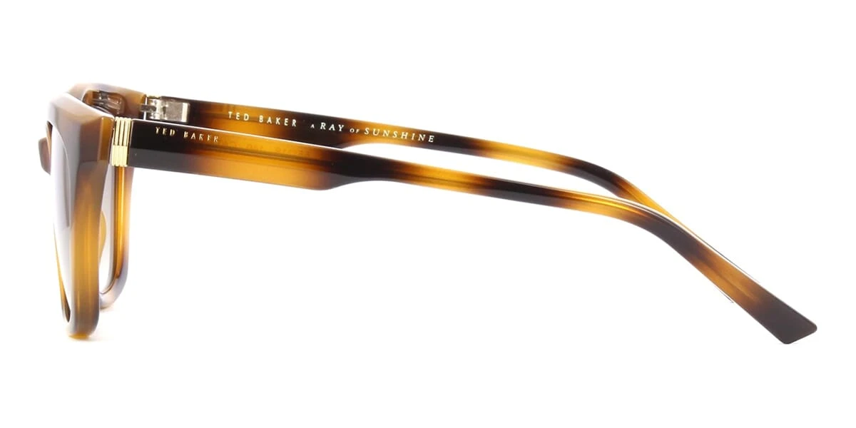 This square Ted Baker sunglass comes in a shiny dark havana frame with brown gradient lenses.