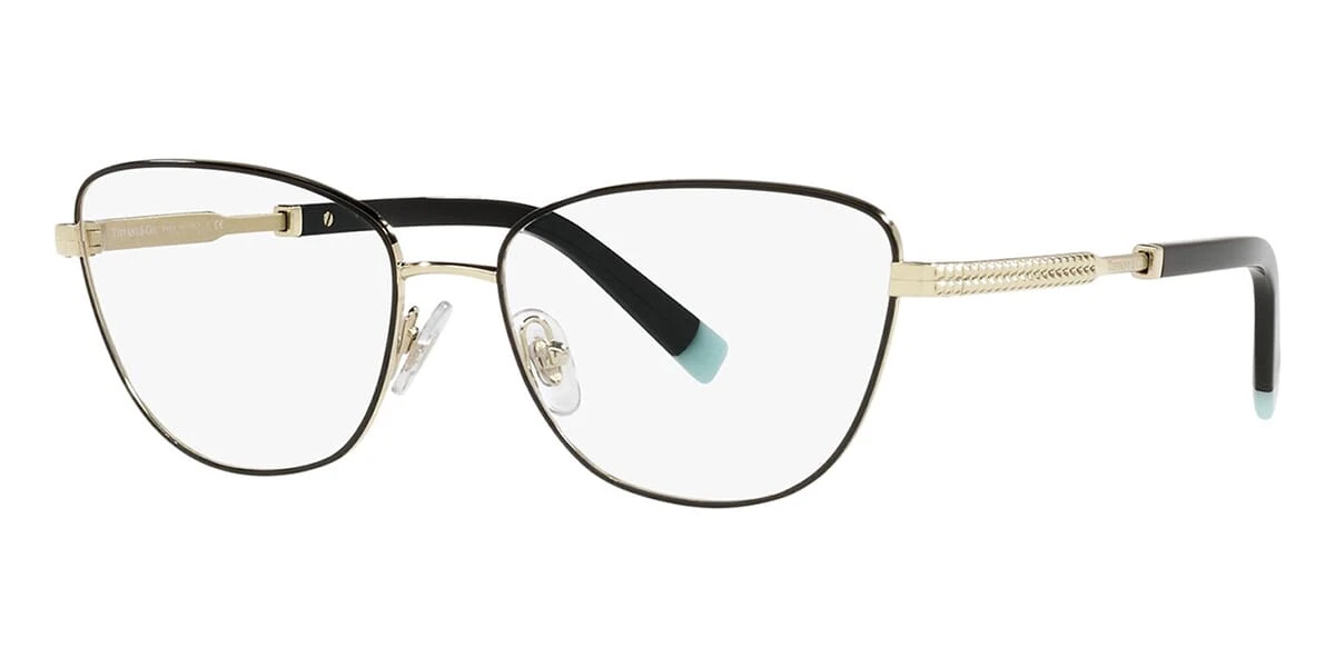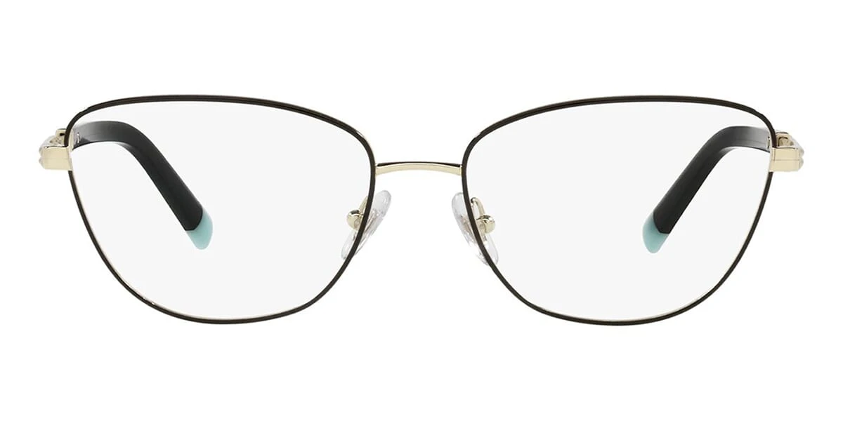 This cat eye Tiffany optical comes in a black on pale gold frame.