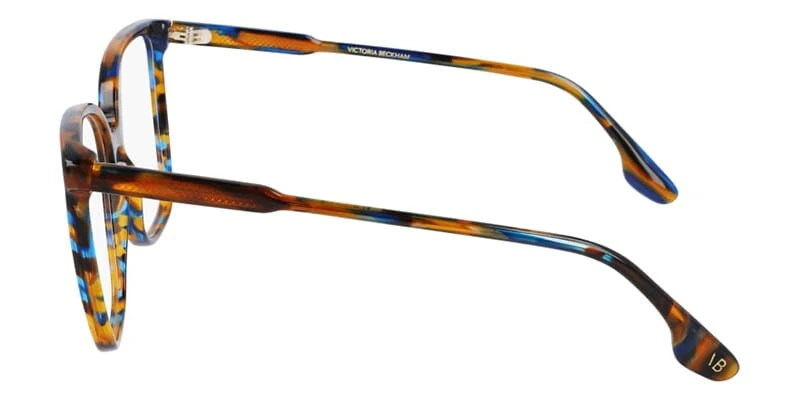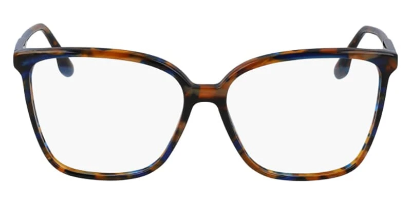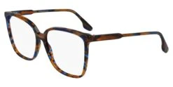 This square Victoria Beckham optical comes in a striped blue havana frame.