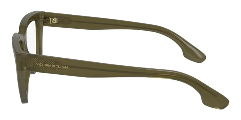 This square Victoria Beckham optical comes in a transparent dark olive frame.