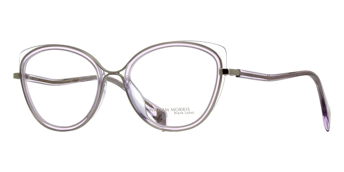 This cat eye William Morris optical comes in a violet crystal and silver frame.