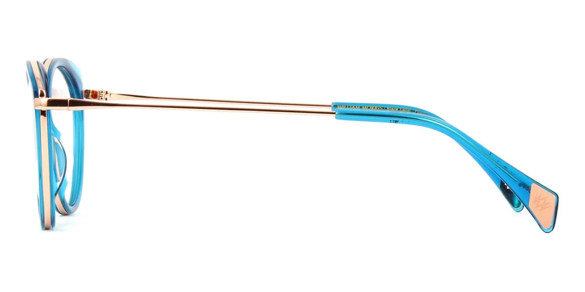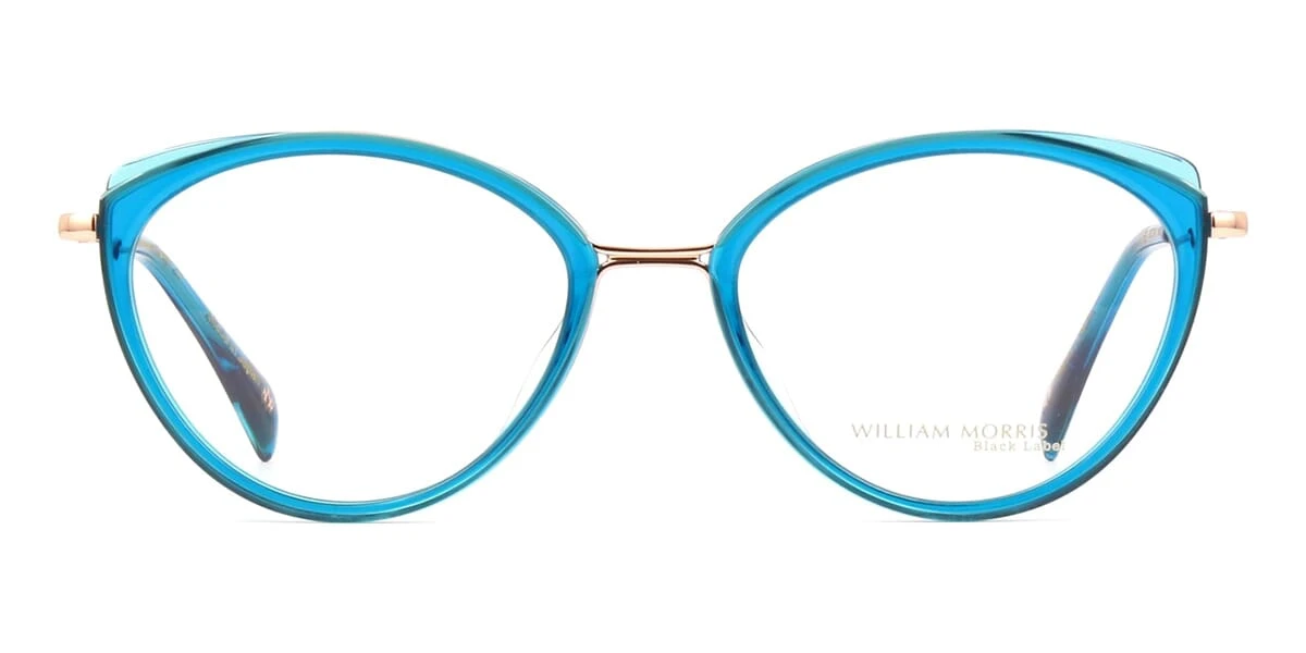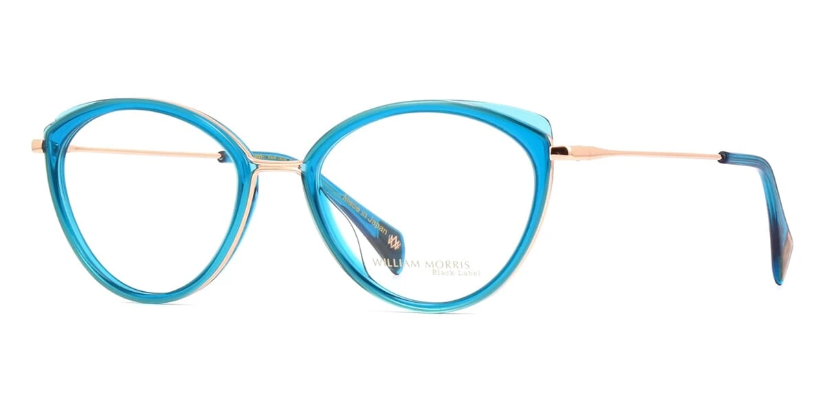 This cat eye William Morris optical comes in a blue crystal with light gold frame.