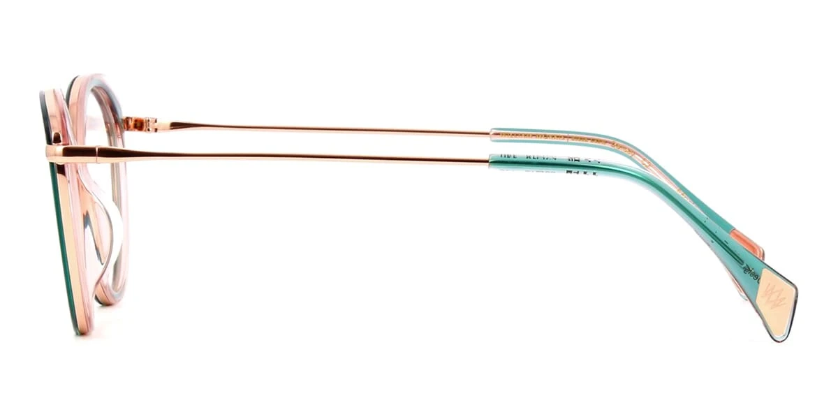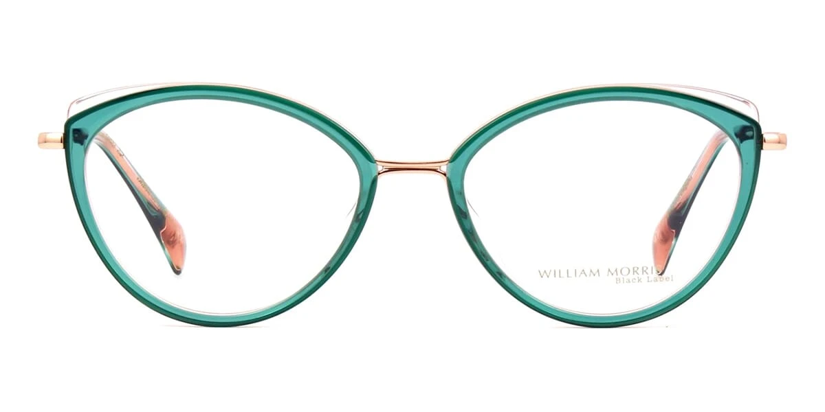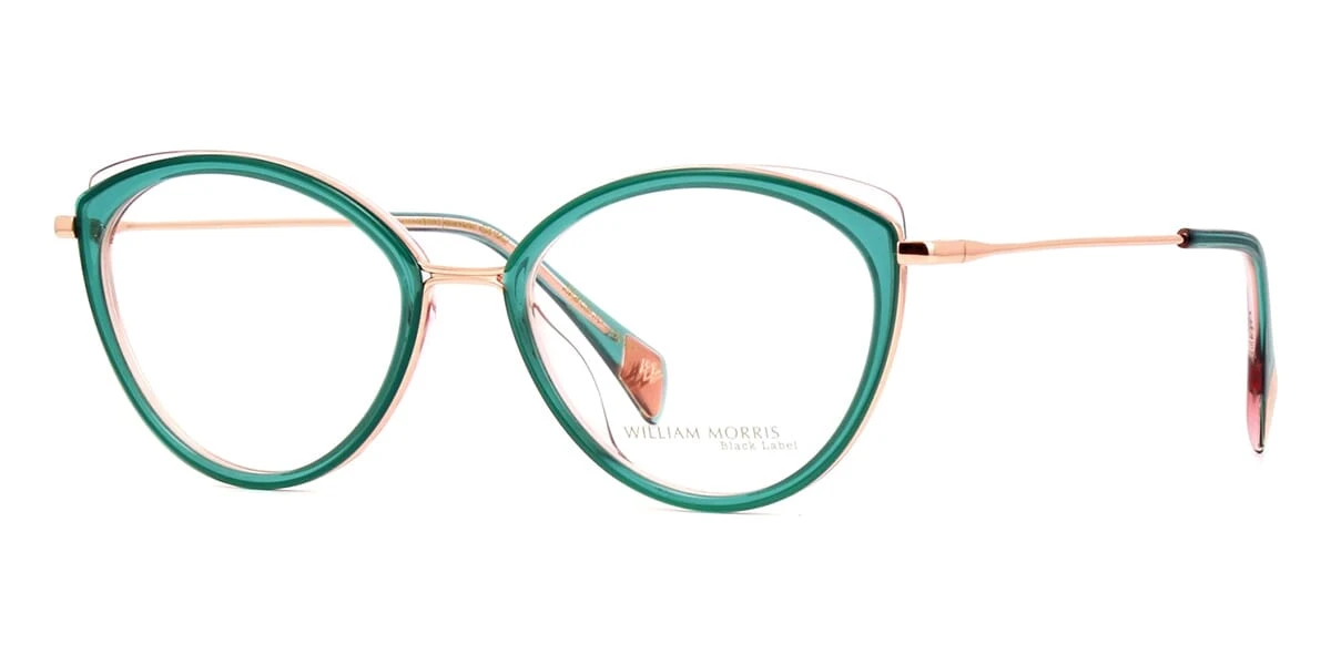 This cat eye William Morris optical comes in a green crystal with rose gold frame.