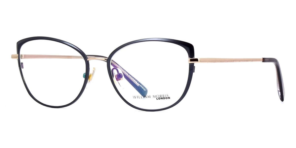 This cat eye William Morris optical comes in a satin cobalt and gold frame.