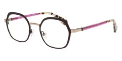 This square WooW optical comes in a dark aubergine violet with pink and havana frame.