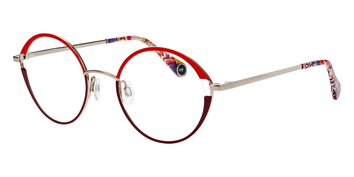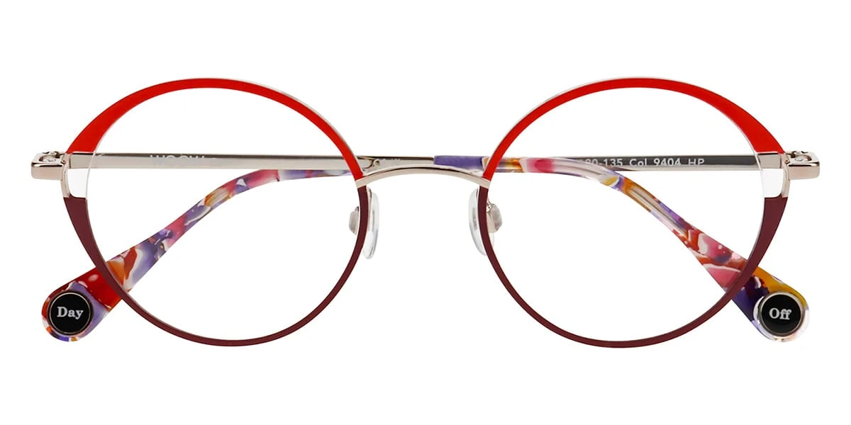 This round WooW optical comes in a fluorescent matte red purple and havana frame.